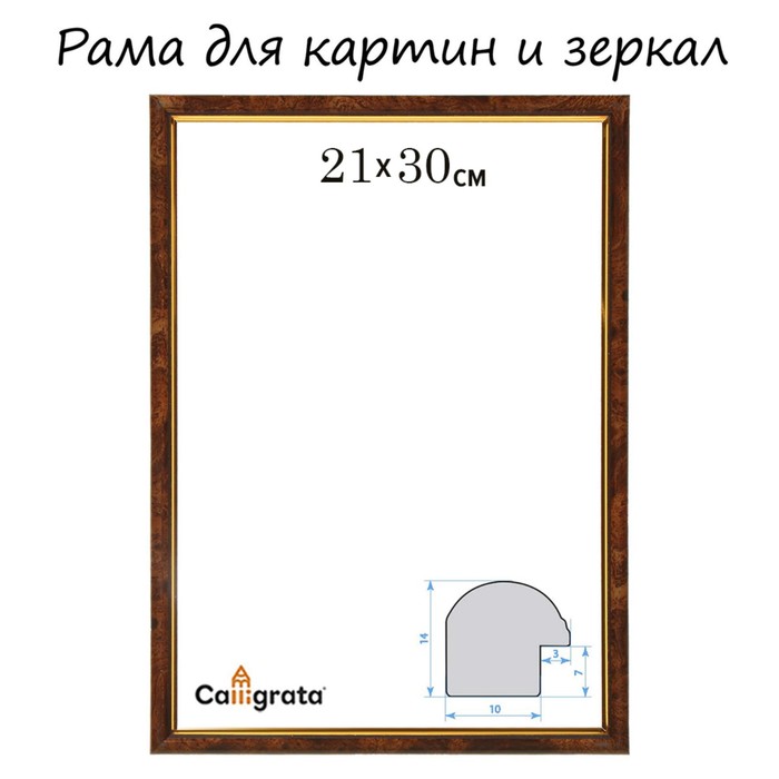 Рама для картин (зеркал) 21 х 30 х 1,2 см, пластиковая, Calligrata PKM, тёмный орех