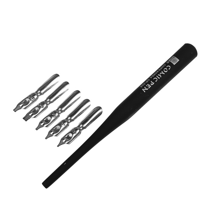 Набор перьев, 5 штук+1 штука держатель для перьев+чернила на водной основе 10 мл, чёрные