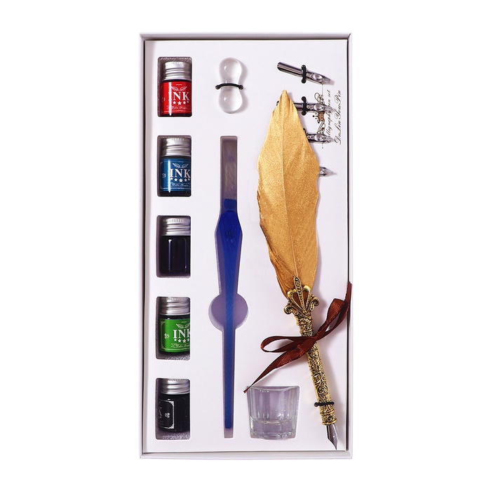 Набор для каллиграфии,перьевая и стеклянная ручка,чернила,подставка,перья 5 шт,чернильница