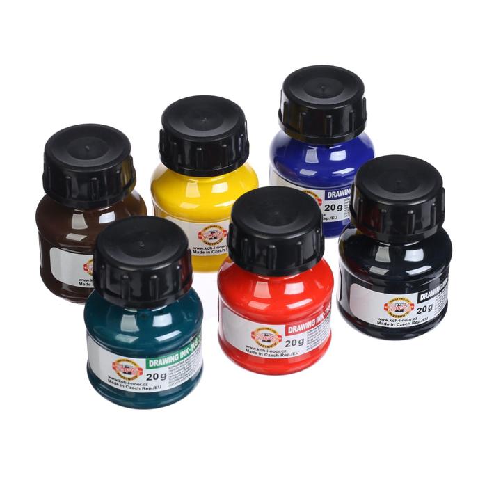 Набор цветной туши Koh-I-Noor, 6 цветов в тубах по 20 мл, картонная упаковка