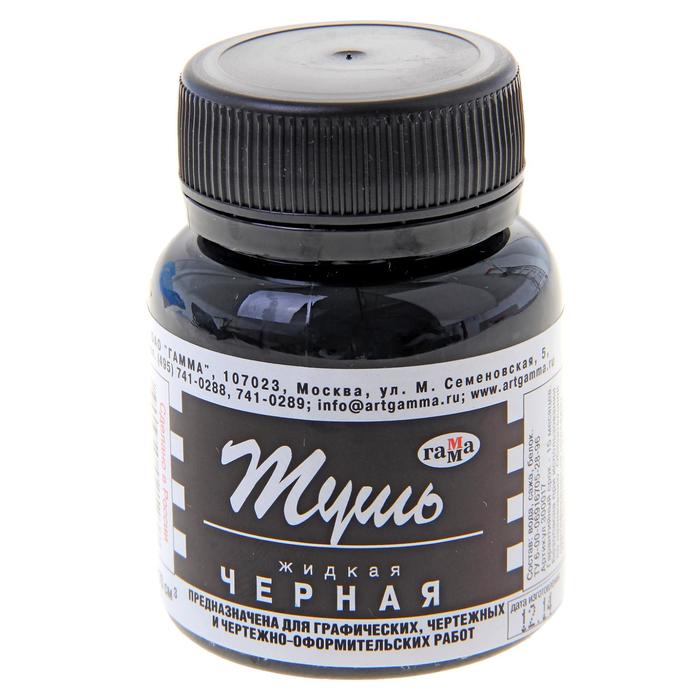 Тушь жидкая, чёрная, 70 мл «Гамма»