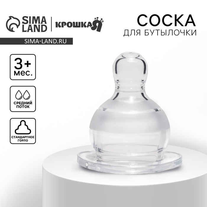 Соска на бутылочку Крошка Я, антиколиковая, широкое горло Ø50 мм, от 0 мес., медленный поток