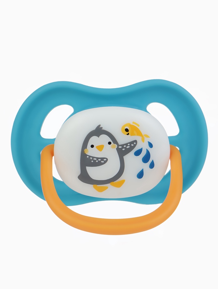 Соска - пустышка ортодонтическая «Пингвин», +6 мес., голубая