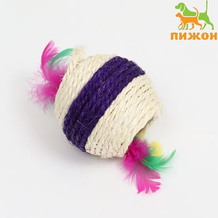 Игрушка для кошек "Шар из лозы с пером", 3,8 см, микс цветов