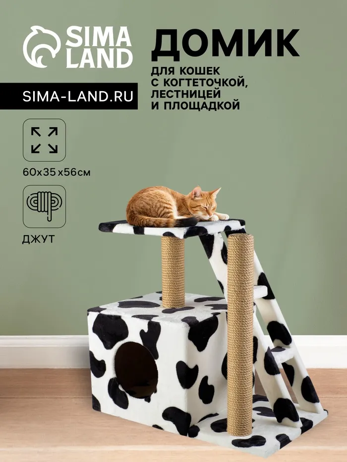Домик для кошек с когтеточкой "Домосед", с лестницей и площадкой, 60 х 35 х 56 см, микс
