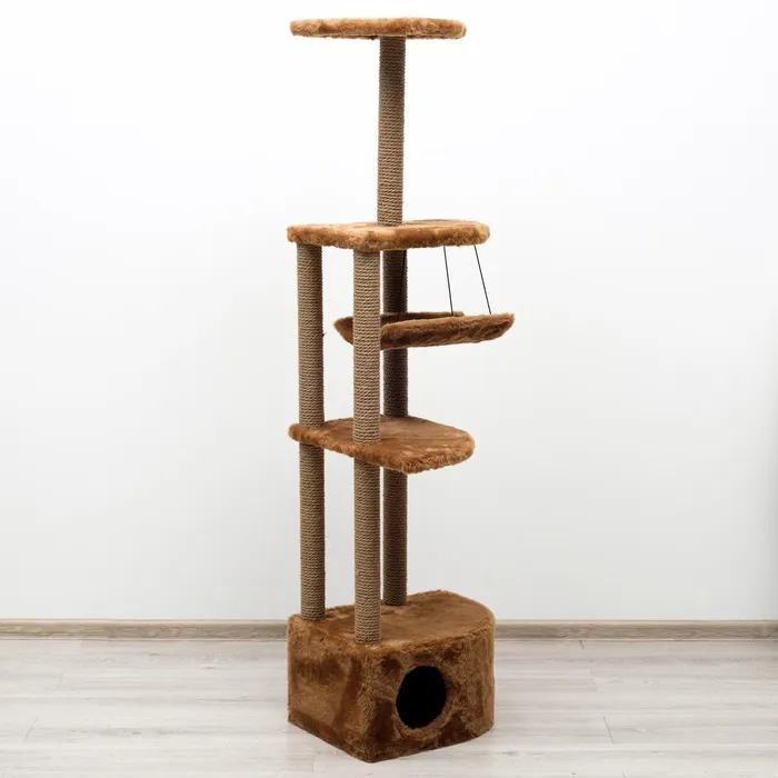 Комплекс для кошек с когтеточкой, угловой, 48 х 48 х 171 см, коричневый