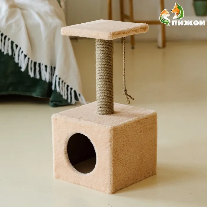 Домик для животных, с когтеточкой и полкой, джут, 32 х 32 х 64, бежевый
