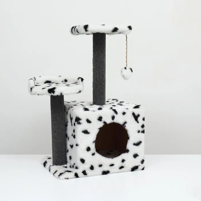 Домик для кошек с когтеточкой "Куб", с мезонином и игрушкой, 60 х 35 х 85 см, микс цветов