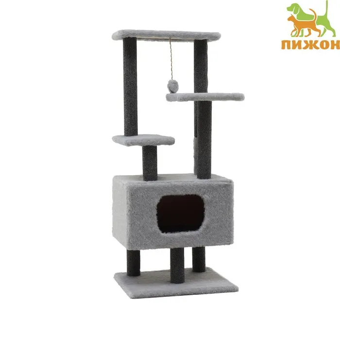 Домик для кошек с когтеточкой, квадратный, 3х-этажный, 45 × 47 × 75 см, серая