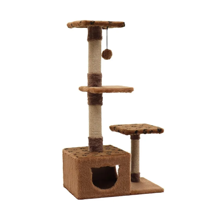 Комплекс для кошек с когтеточкой, квадратный, 3х-уровневый, 65 х 36 х 107 см, коричневый