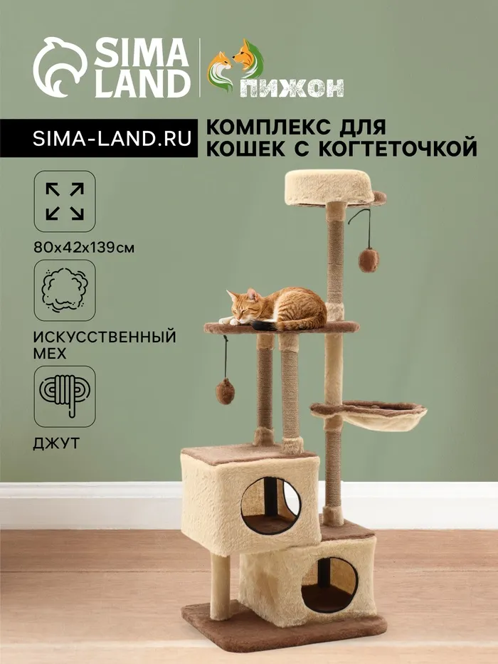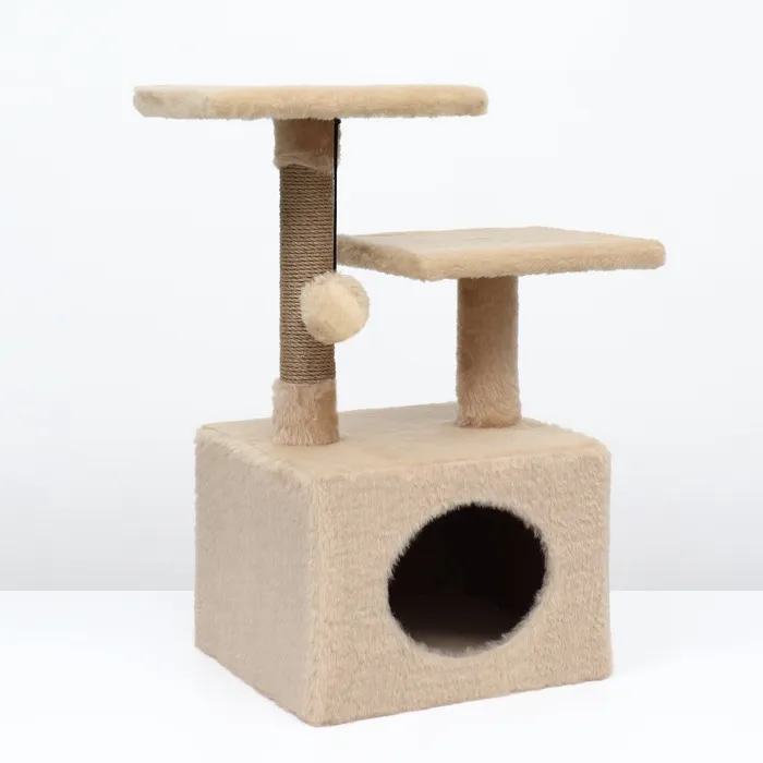 Комплекс для кошек с когтеточкой, разборный, 3-х уровневый, 80 х 42 х 139 см, бежевый