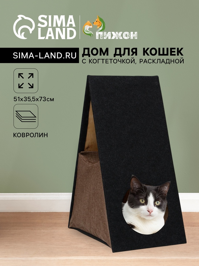 Дом для кошек, 51×35.5×73 см, с когтеточкой, раскладной, цвет МИКС