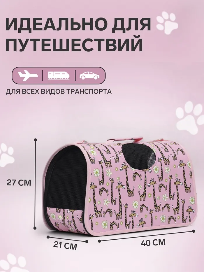 Сумка-переноска каркасная "Жирафы", размер M, 40 х 21 х 27 см