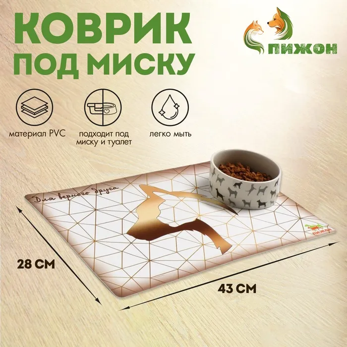 Коврик под миску "Пижон" с нескользящим основанием 43 х 28 см "Для верного друга"