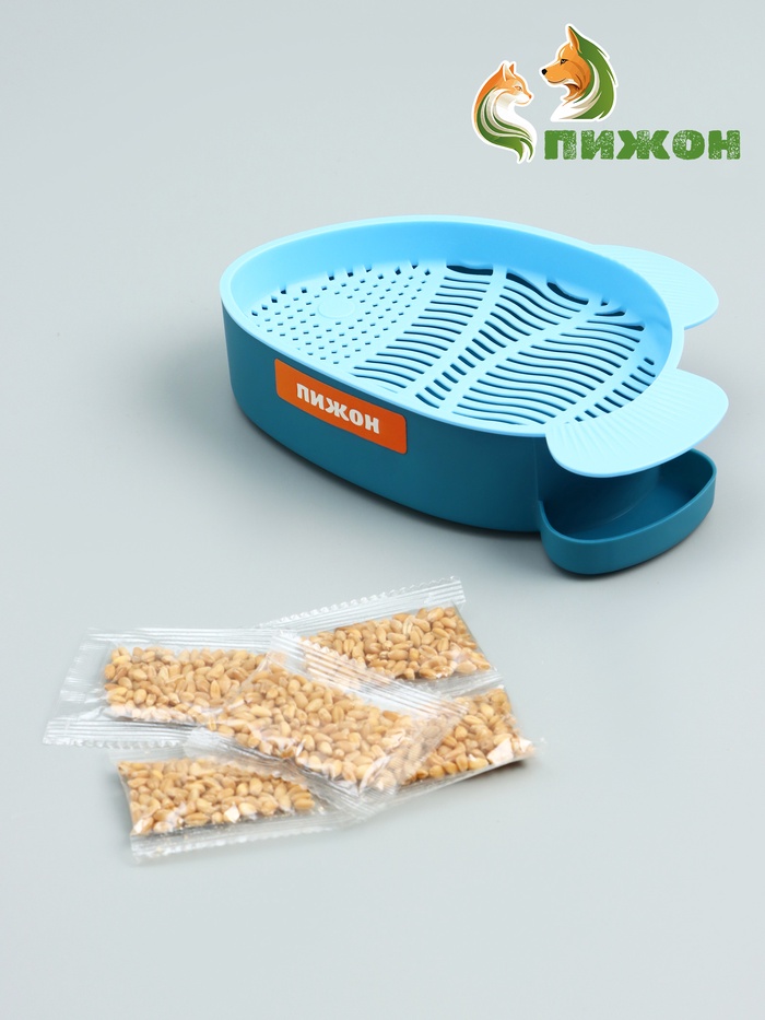 Проращиватель травы кошкам «Рыбка», с семенами, 18×12×4 см, синий/голубой