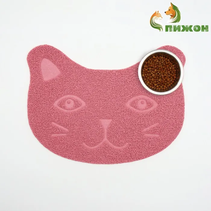 Коврик 2-в-1 под миску/туалет животных "Киса", 40 х 30 см, пепельно-розовый