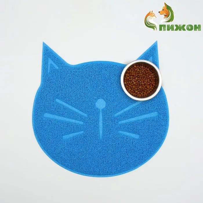 Коврик 2-в-1 под миску/туалет животных "Киса", 40 х 30 см, голубой