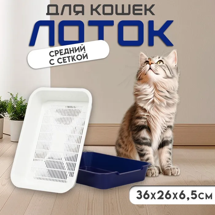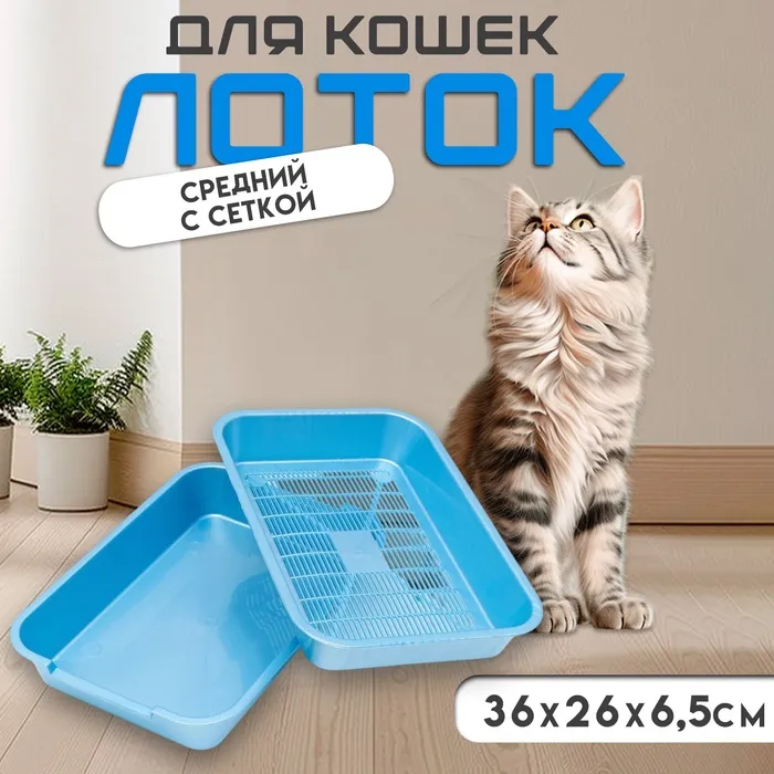 Туалет средний с сеткой 36 х 26 х 6,5 см, лоток синий/сетка белая