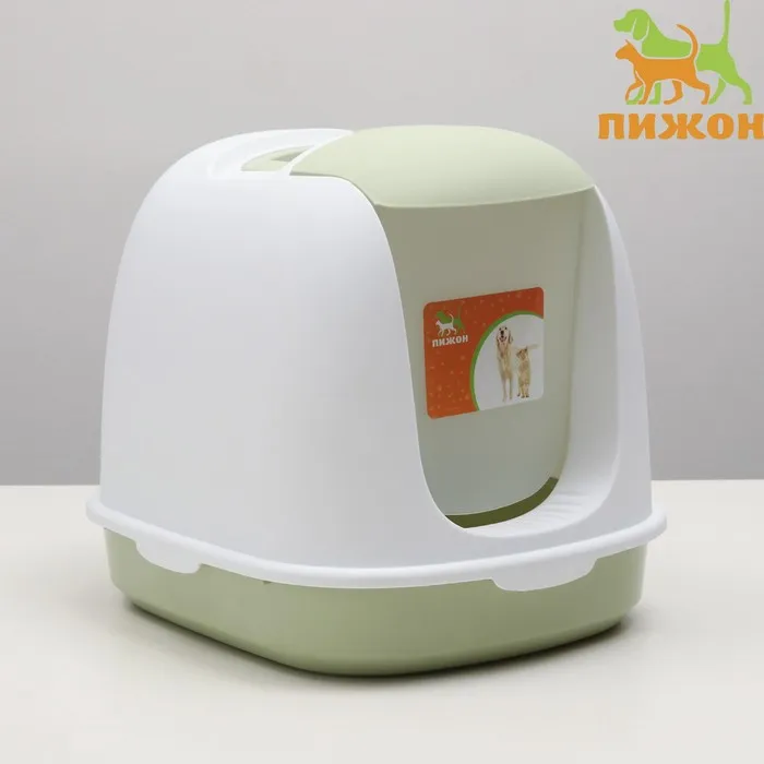 Туалет закрытый с совком, 47 х 40 х 39 см, бело-зеленый