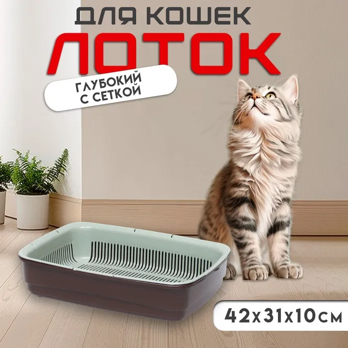 Туалет с сеткой "Белла" для кошек, 37 х 27 х 8 см, синий