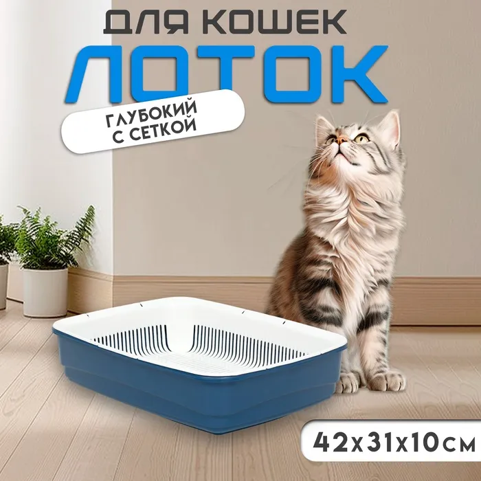 Лоток большой с сеткой Atlantis "Стандарт", 42 х 31 х 10 см, синий,