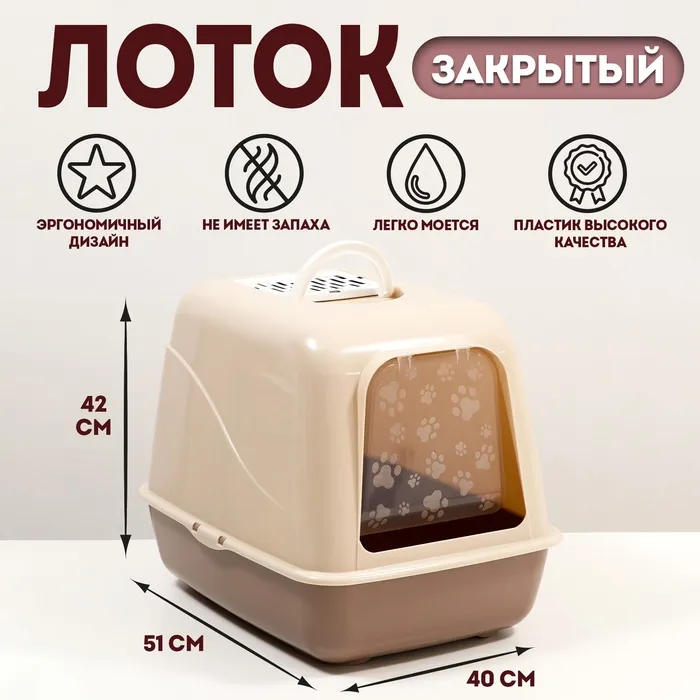 Туалет для кошек закрытый (бежевый)