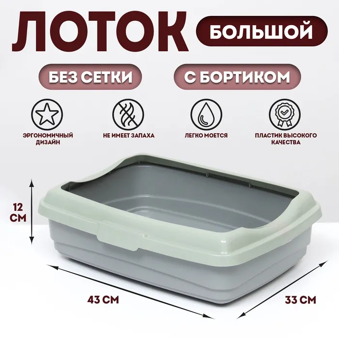 Лоток большой с бортиком Atlantis "Стандарт", 43 х 33 х 12,5 см, серый
