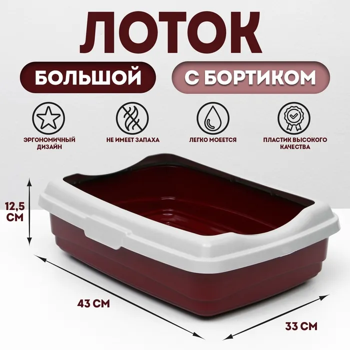 Туалет средний с бортом и сеткой 36 х 26 х 9 см, лоток+сетка+борт белый