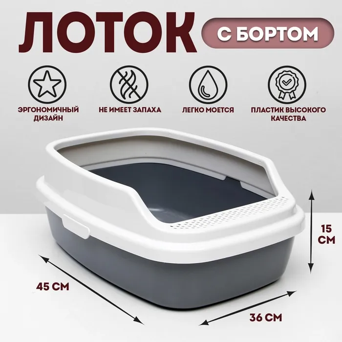 Туалет с бортом с сеткой, 45х34х15 см, серый