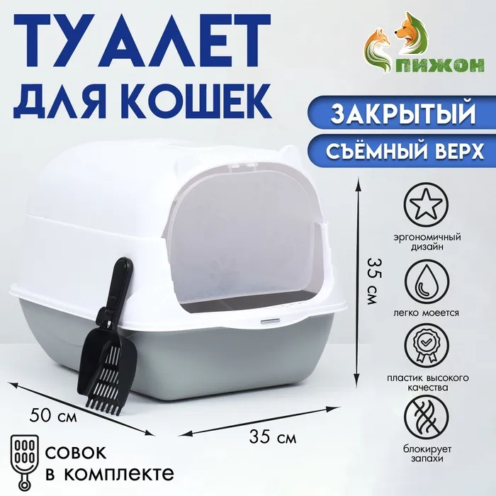 Туалет-домик 35 х 50 х 35 см, бело-серый