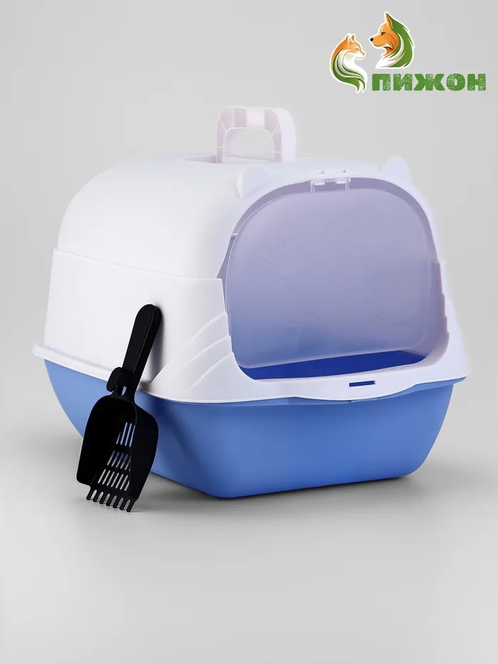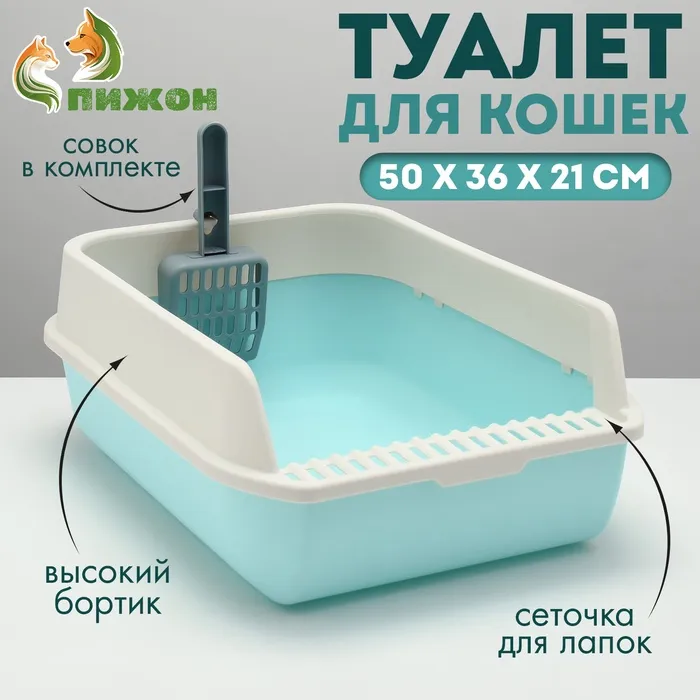 Туалет с высоким бортом с совком и фильтром, 50 х 36 х 21 см, голубой