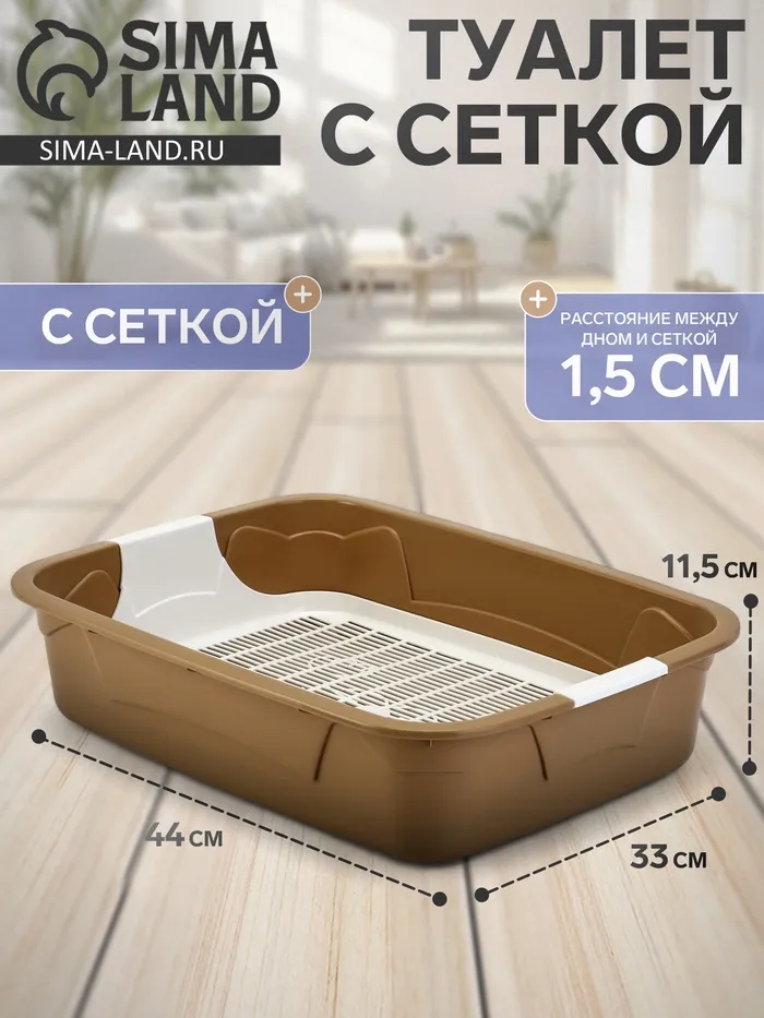 Лоток для кошек Фур-Мур 48 х35,5 см с сеткой и бортом цвет,Soft-touch, капучино