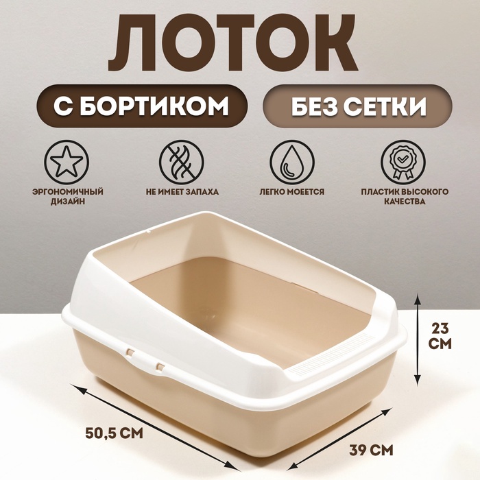 Лоток для кошек без сетки 50,5 х 39 х 23 см, бежевый