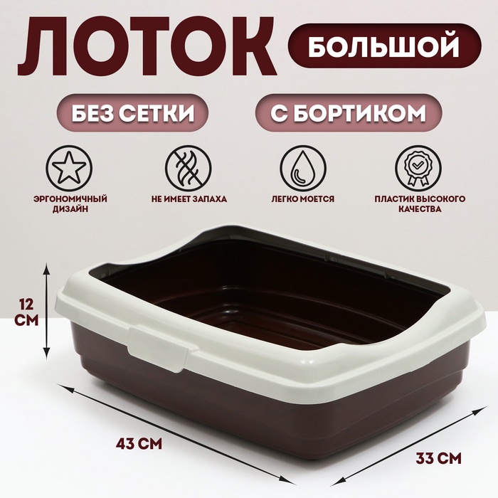 Лоток для кошек Фур-Мур 48×35.5 cм с высоким бортом + совок,Soft-touch, капучино