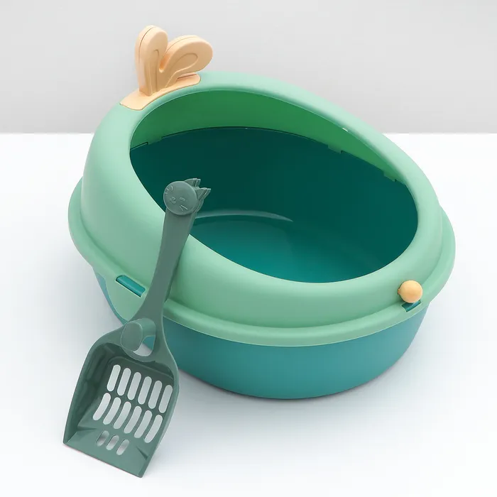 Лоток для кошек Фур-Мур 48×35,5 см с высоким бортом + совок Soft-touch, смоки