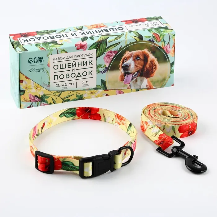 Поводок 2 м и ошейник 28-46 см «Цветы», застёжка - фастекс