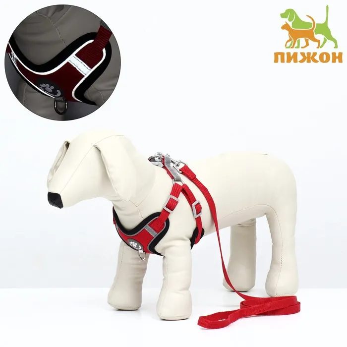 Комплект амуниции с мягкой шлейкой, L, поводок 120 х 1,5 см,ОШ 30-50 см,ОГ 36-56 см, красный