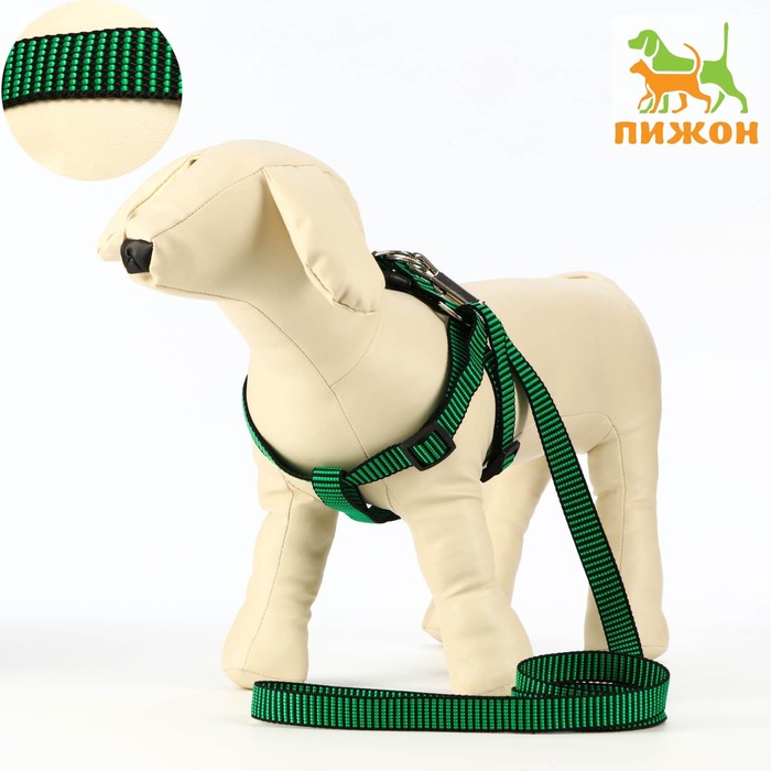 Комплект с мягкой шлейкой "Веточки", размер М, поводок 120 х 1,5 см, ОГ 34-66 см, зеленый