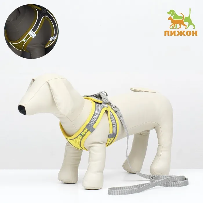 Комплект с мягкой шлейкой, быстросъемный, M, поводок 150 х 1,5 см, ОШ 38-44 см, ОГ 44-50 см, жёлтый