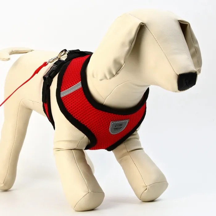 Шлейка дышащая с поводком и светоотражающей нашивкой, L, ОШ 35, ОГ 38-50, красная