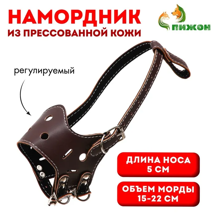 Намордник из прессованной кожи регулируемый, №1, ДН 4,5 см, ОМ 13-20 см, коричневый