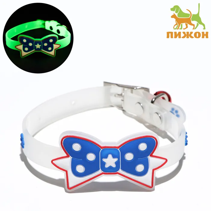 Ошейник "Бантик", 28 х 1 см, ОШ 18-24 см, прозрачный/синий