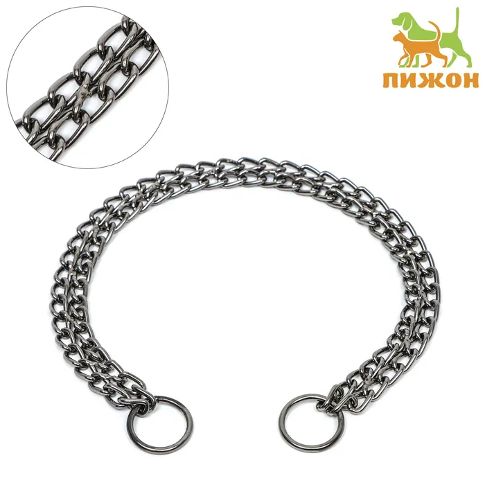 Ошейник - удавка металлический двухрядный, 55 см, толщина проволоки 2,5 мм, черный