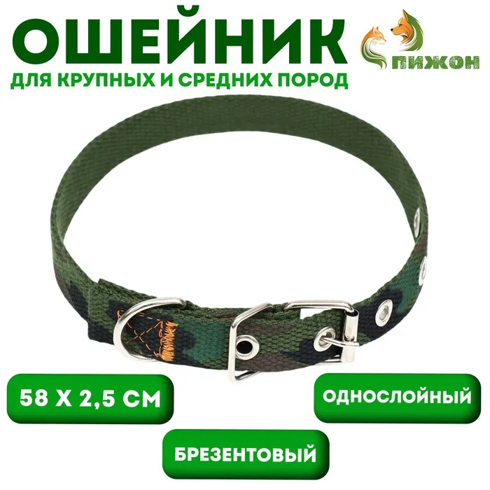 Ошейник брезентовый однослойный "Камуфляж", 58 х 2,5 см