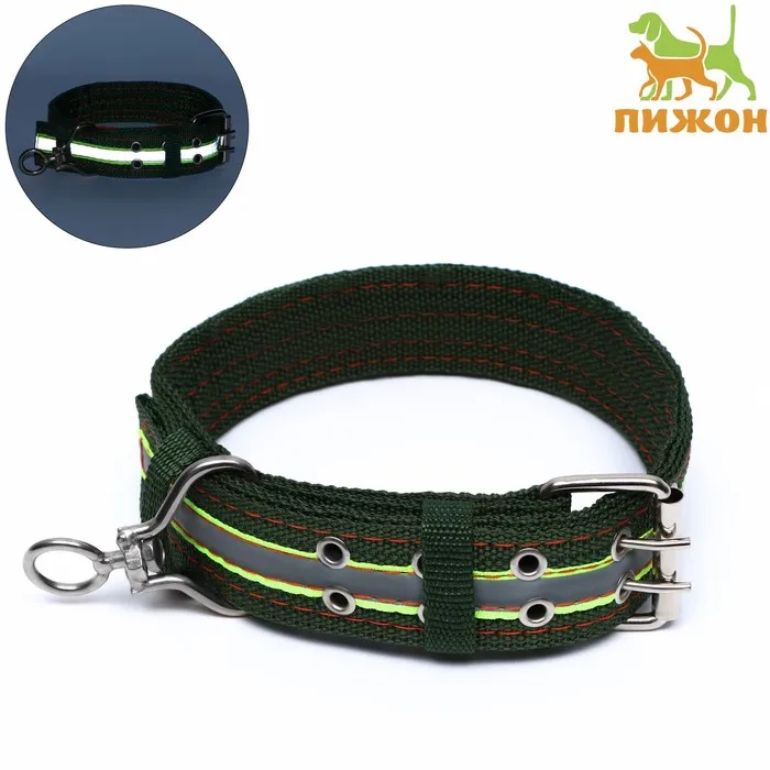 Ошейник четырехслойный светоотражающий с вертлюгом, 65 х 4 см, зелёный