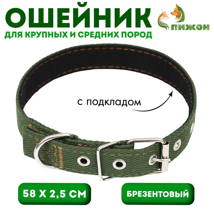 Ошейник брезентовый с подкладом, 58 х 2,5 см, хаки