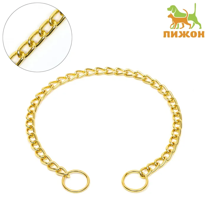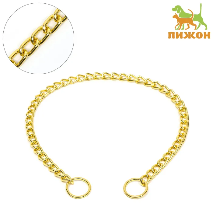 Ошейник - удавка металлический однорядный, 60 см, толщина проволоки 3 мм, золотистый