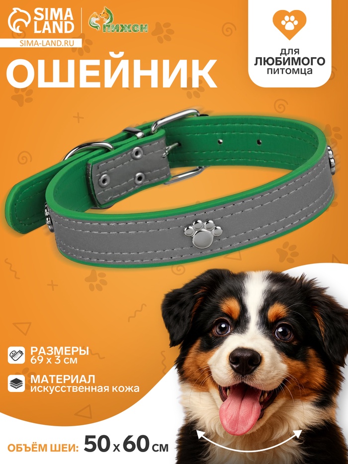 Ошейник «Лапки», 69×3 см, искусственная кожа, зелёный