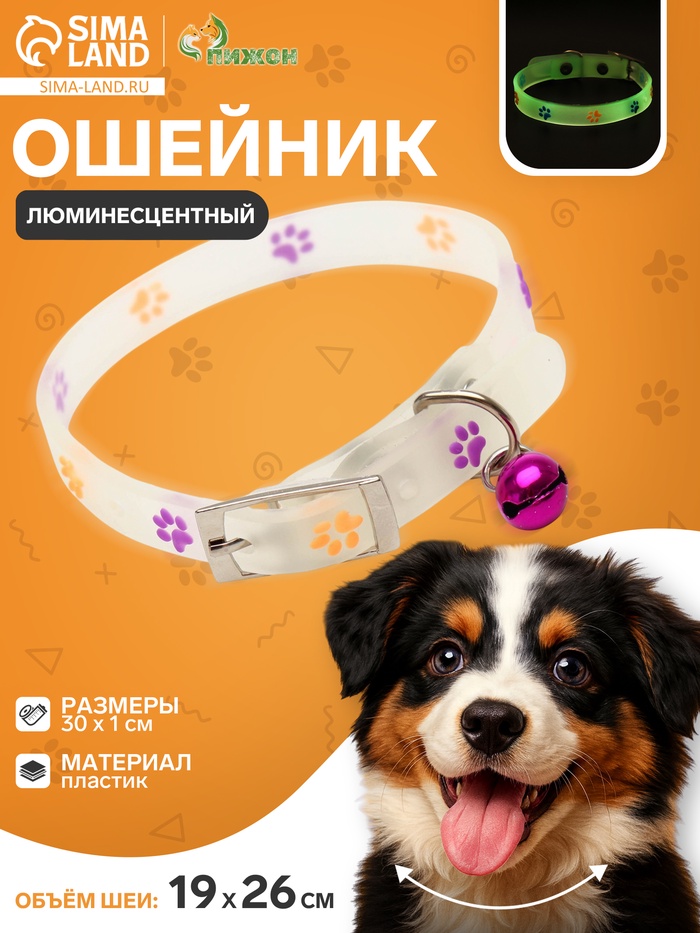 Ошейник «Яркие следы», 30×1 с, светящийся в темноте, люминесцентный, белый