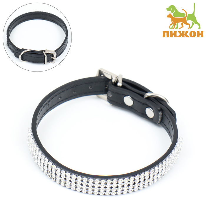 Ошейник, 38×1.5 см, ОШ 26-33, со стразами в 4 ряда, стразы на пряжке, чёрный